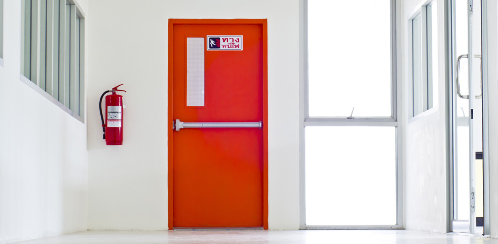 If a fire door has a glass panel (for light or visibility), that glass must be “fire-resistant glazing,” tested as part of the door assembly. Ordinary glass rapidly fails under fire.